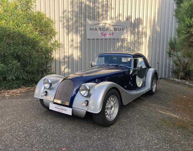 Pour l’historique, c’est une Plus 4 de 2010, deuxième main, achetée neuve chez Brands hatch en Angleterre par le premier propriétaire ( en conduite à gauche d’origine ) qui habitait le nord de la France .Venu pour configurer sa Morgan , il avait flashé sur une Morgan "challenge" présente à l'atelier et a voulu faire exactement la même configuration pour la Plus 4 ! Reprise sur une Lotus Elise neuve en 2018 chez nous, elle fût revendue à un amateur de Morgan en Charente . Nous venons de la récupérer à nouveau en reprise , elle illumine le show-room par sa configuration chic et sport à la fois !
