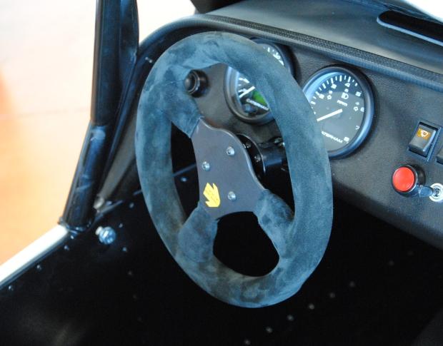 Cette Seven 340 avec son pack Academy, reçoit les options sièges composites et le volant extractible en peau retournée.