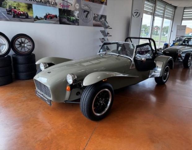 Rare et magnifique SUPER SEVEN 1600 en châssis Large ( SV ), cet exemplaire reçoit le moteur 1.6 Ford Sigma développant 135 ch . Cette finition dotée des coloris historiques avec un intérieur cuir carmin, mais aussi jantes polies, compteur Smith....
