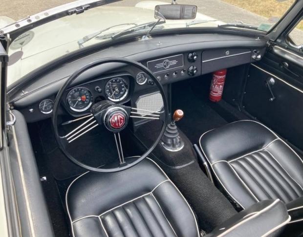 Splendide MG B cabriolet, de 1964. Cet exemplaire se présente dans un très bel état d'origine. Son entretien régulier et son historique limpide en font un exemplaire de collection. Un dossier d'expertise (de 2014) sera fournis avec le véhicule.