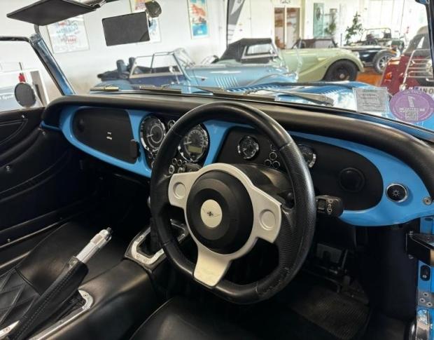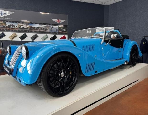Trés élégante Morgan Plus 8 de juillet 2014. Véhicule vendu neuf en Angleterre, conduite à droite. Cet exemplaire, dispose de son carnet d'origine , double de clefs . Elle se présente dans une trés belle livrée Bleue sublimée de son intérieur en cuir noir avec surpiqures bleues . *